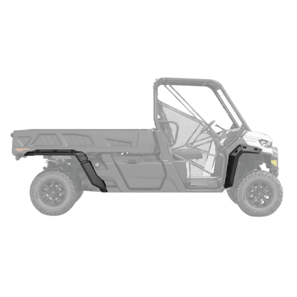 Robust formsprutad polypropenkonstruktion. Perfekt för att hålla lera och skräp utanför fordonet. Inkludera främre och bakre förlängning och all monteringshårdvara. Perfekt för bandutrustade fordon för att minska snöprojektionen.