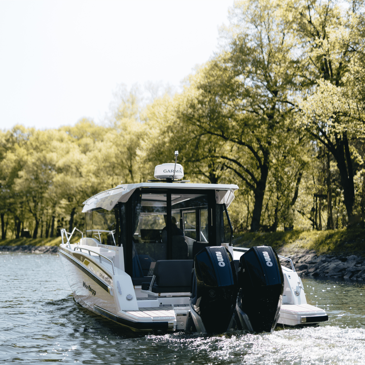 Rymlig med smarta lösningar ger dig och din familje möjlighet att njuta av sjön, hela året. Gran Coupe 905 är en sportig, helårs coupe-båt som skiljer sig från mängden.