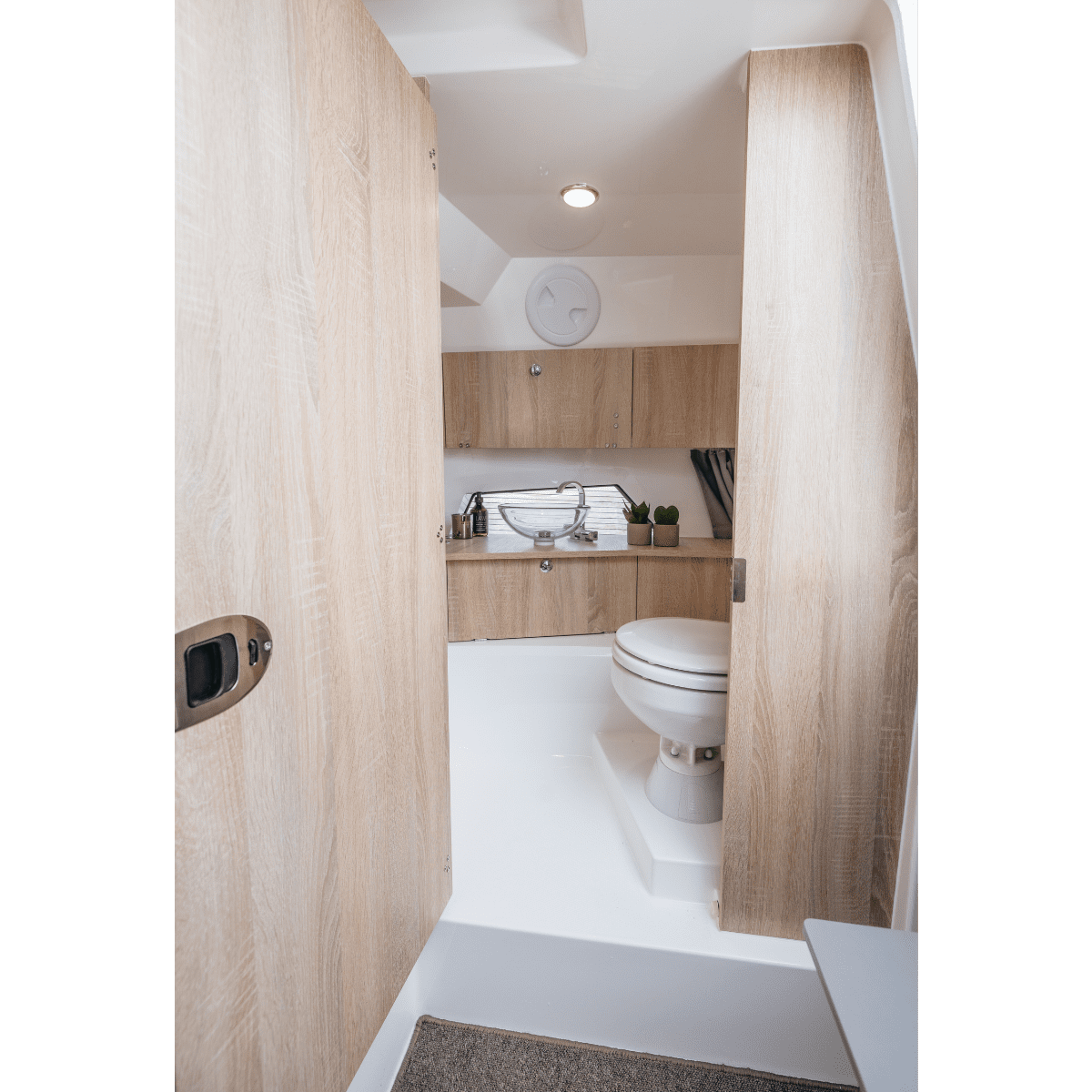Kabinen i Noblesse 830 kommer att ge dig känslan av gott om plats, hög komfort och smarta lösningar för problemfria resor till sjöss. Här hittar du gott om förvaringsutrymmen och bra sängar. Hytten är utrustad med en stor dubbelsäng och ett separat toalettrum.