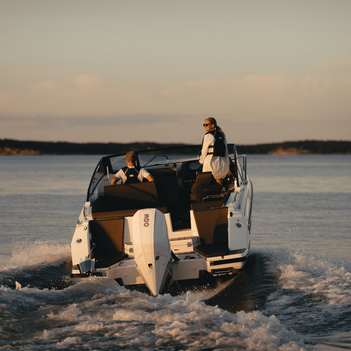 Du känner snabbt igen Noblesse 830 som en äkta Nordkapp. Båten har former, design och detaljer som sina småsyskon, men med ett större inre och yttre mått. Linjerna på båten ger den en exklusiv prägel samtidigt som båten är stilren med moderna uttryck. Den låga profilen ger dig ett intryck av en sportig båt samtidigt som vindrutan och utformningen i cockpiten är skapad med en låg durk och ett högt fribord. Detta reducerar vindmotståndet samtidigt som du sitter bra och suddat i cockpit.