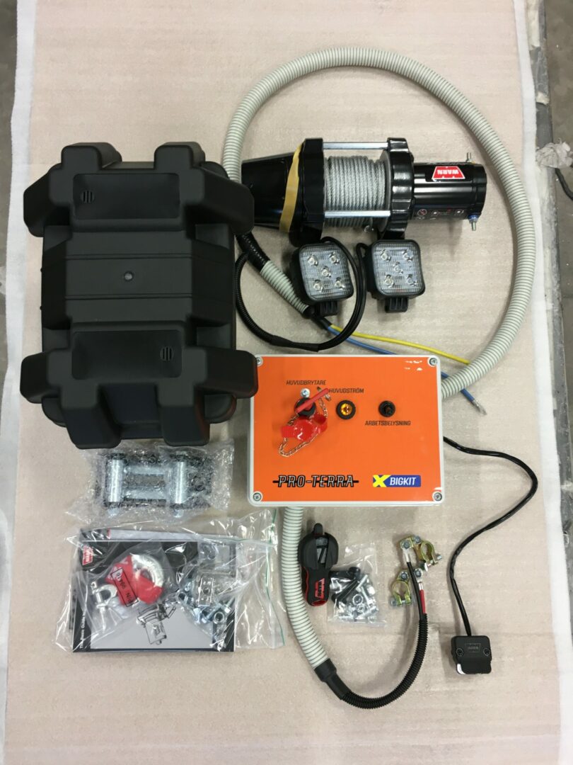 Vinsch Warn VRX25 komplett, Radiostyrning Warn, Led lampor, Batterilåda, Elsystem inkopplat och testat i kopplingslåda med lampa och brytare.
