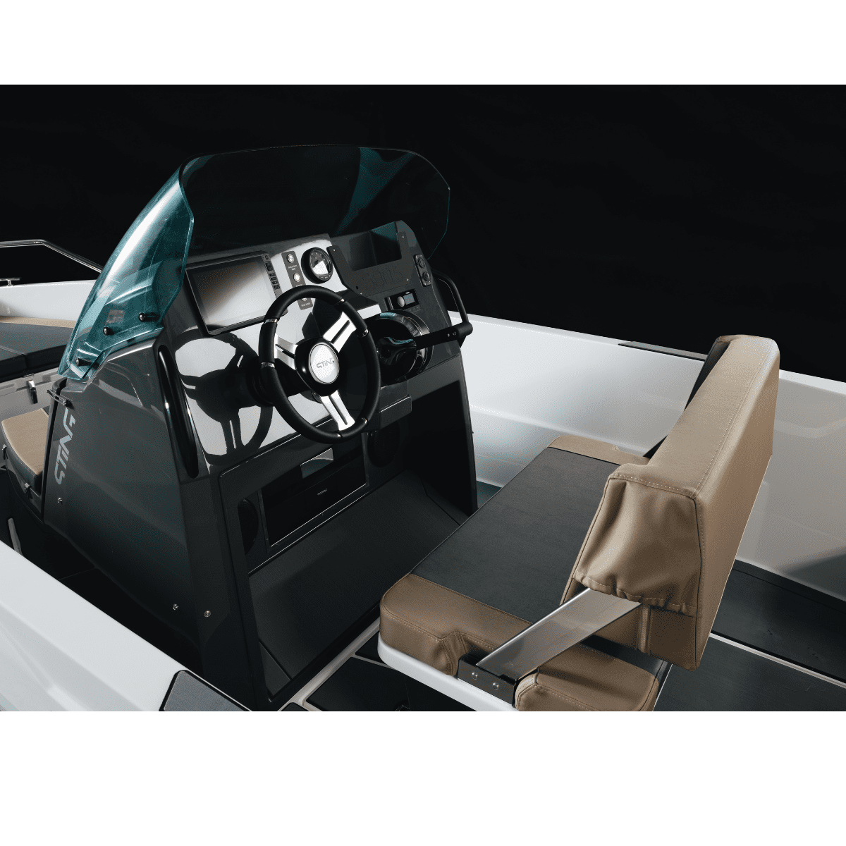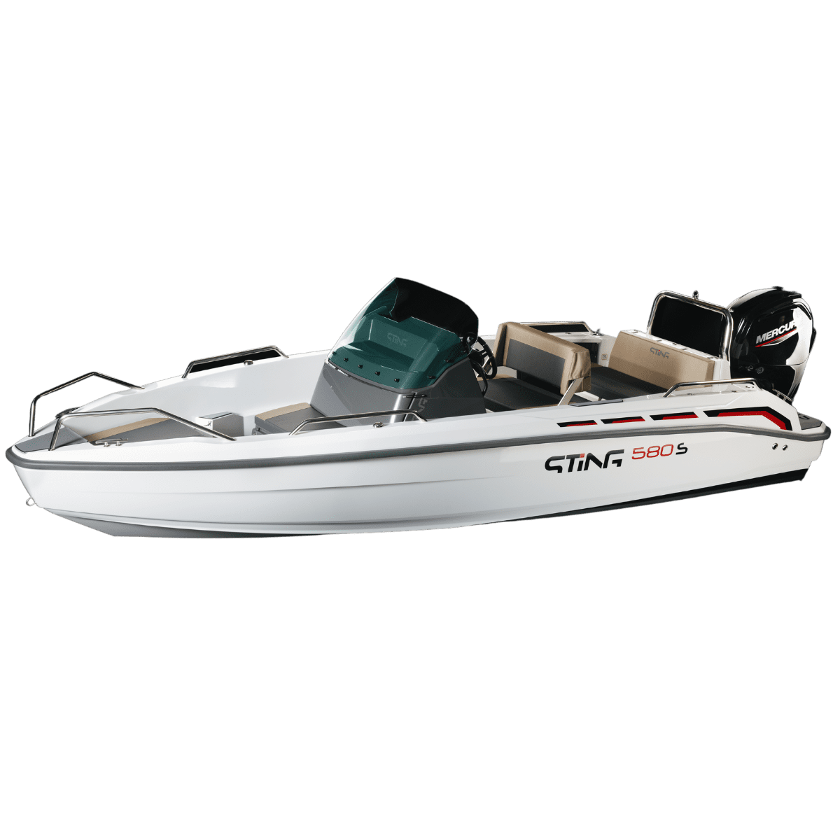 Möt nya 580 S, flaggskeppet bland styrpulpeter från Sting. I 580 S ser vi många av dom välgjorda och smarta lösningarna från 485 S och 530 S, och i tillägg förbättrar vi plats, utrymme och förbättrar förarmiljön. Ett brett och stabilt skrov med bra köregenskaper ger alla ombord en komfortabel upplevelse på sjön. Motoriseringen från Mercurys tystgående 100 och 115 hästars motorer gör att Sting 580 S har en mjuk och behaglig gång, både i långsam och marschfart.